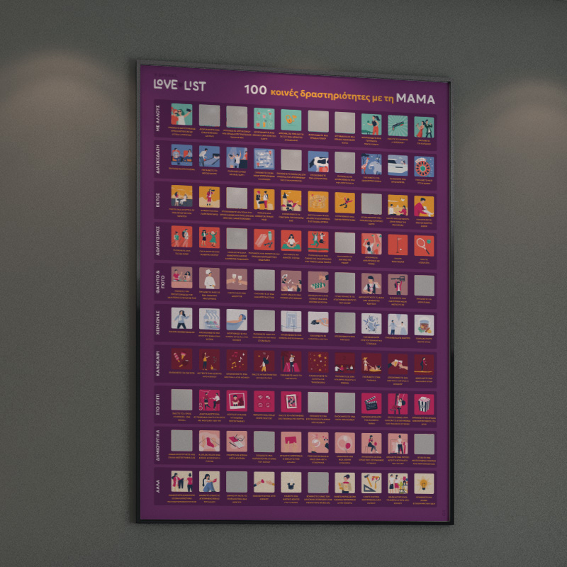 Το «Love List» δεν είναι απλά μια αφίσα! 100 σούπερ ιδέες για προγραμματισμό με τη μαμά σας σε μια αφίσα τύπου «λίστας καλαθιού», ώστε να μπορείτε να δημιουργήσετε νέες κοινές εμπειρίες και αναμνήσεις.